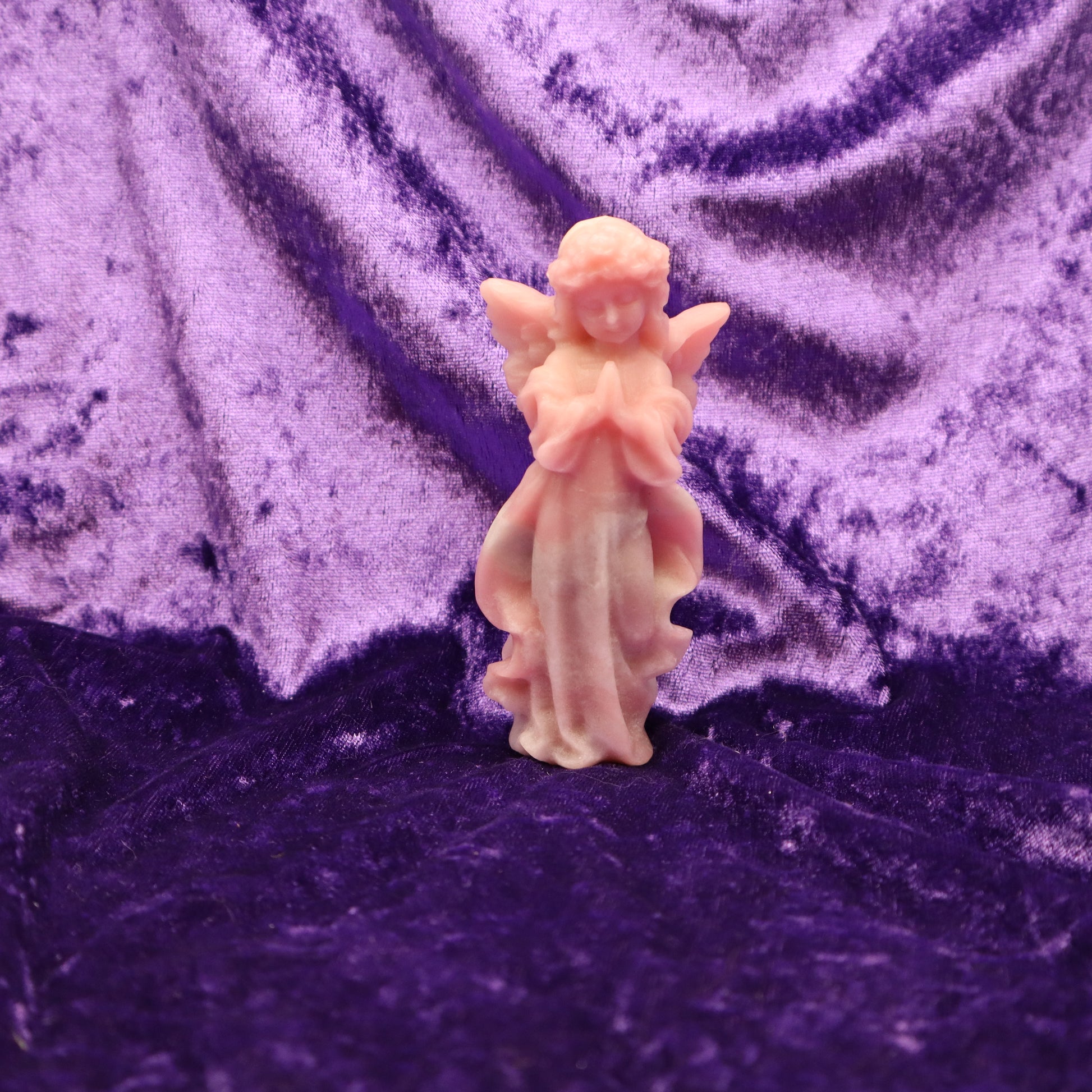 📍 Origin: The Pink Opal used in this angel comes from the Andes Mountains of Peru, where the stone is honored as a national treasure for its soothing properties.